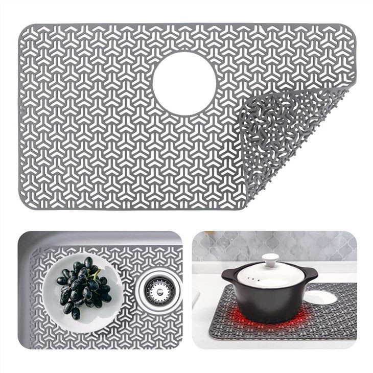 2. Rezistent la căldură: siliconul este rezistent la căldură, așa că puteți folosi covorașul chiuvetei ca suport pentru a vă proteja blaturile de oalele și tigăile fierbinți.